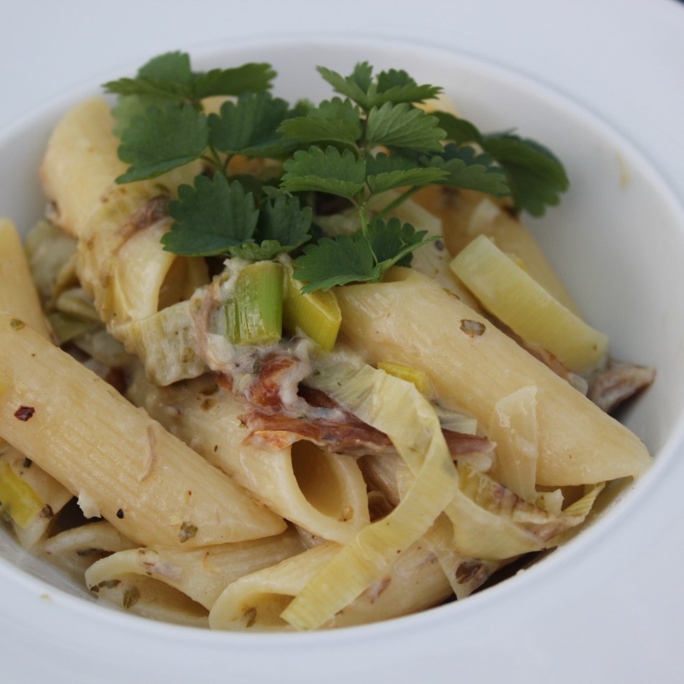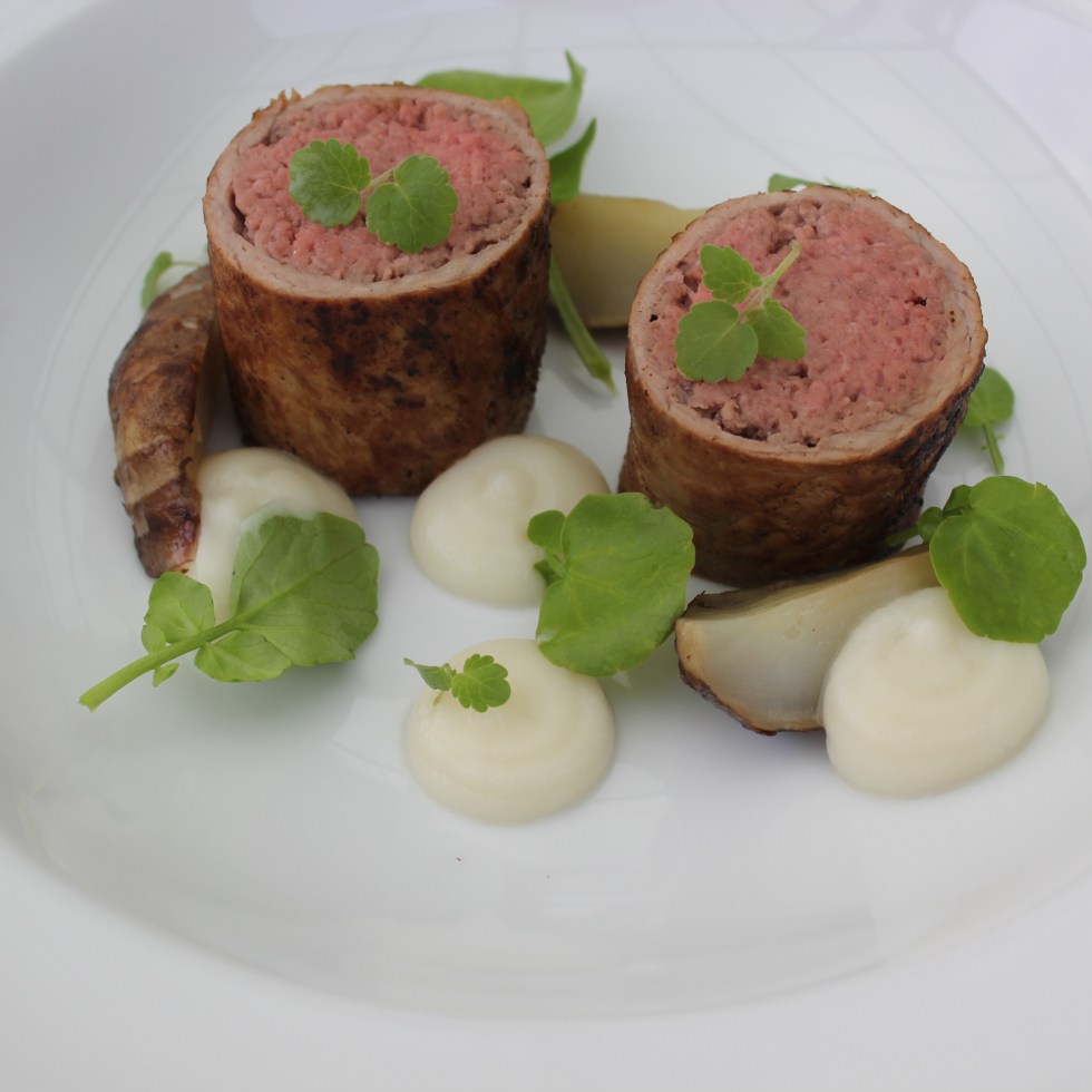 Hert, Ganzenlever, selder-truffelpuree, peer
