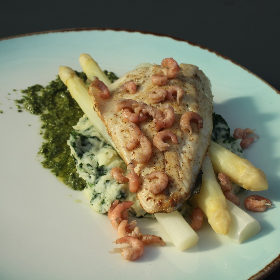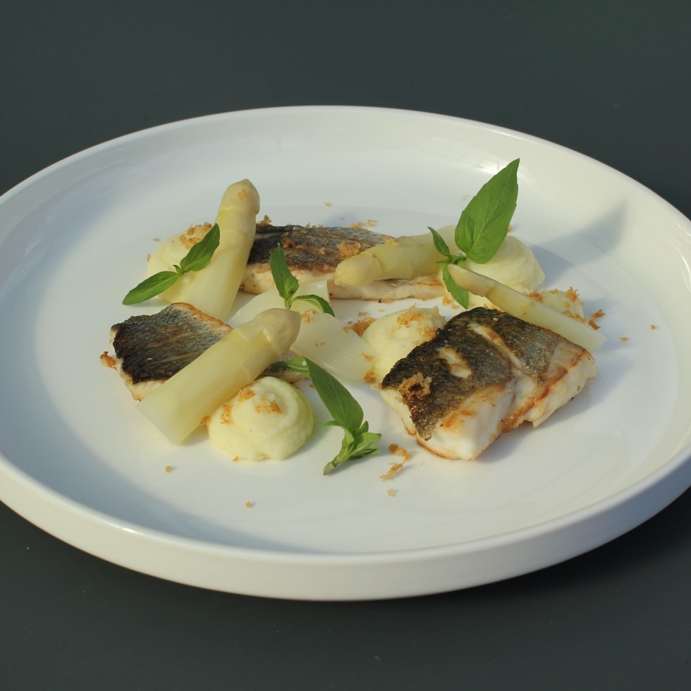 Kabeljauw, erwtenpuree, hollandaisesaus