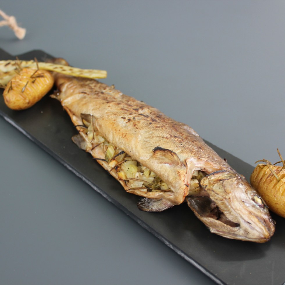 Gegrilde zeebaars, burrata, marinade
