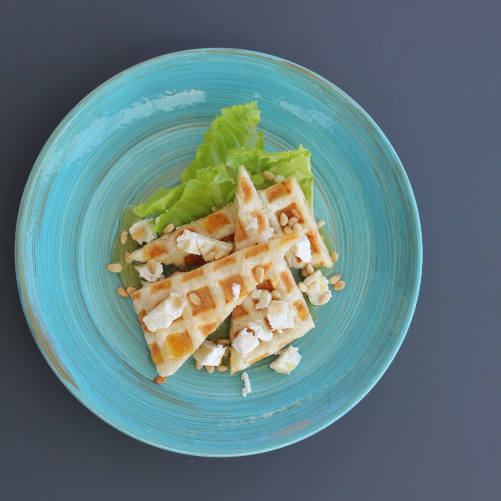 wafel, geitenkaas, honing