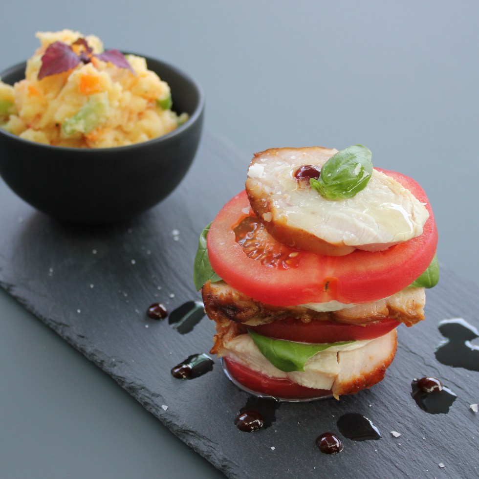 Kalkoen, tomaat mozzarella, zomerpuree