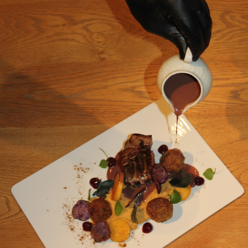 Lamskroon, truffelaardappel, meiraapjes