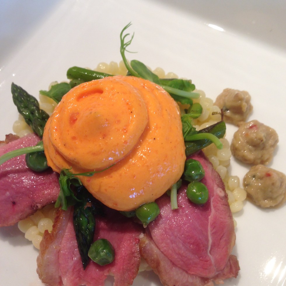 Eend, Fregola, paprika-espuma